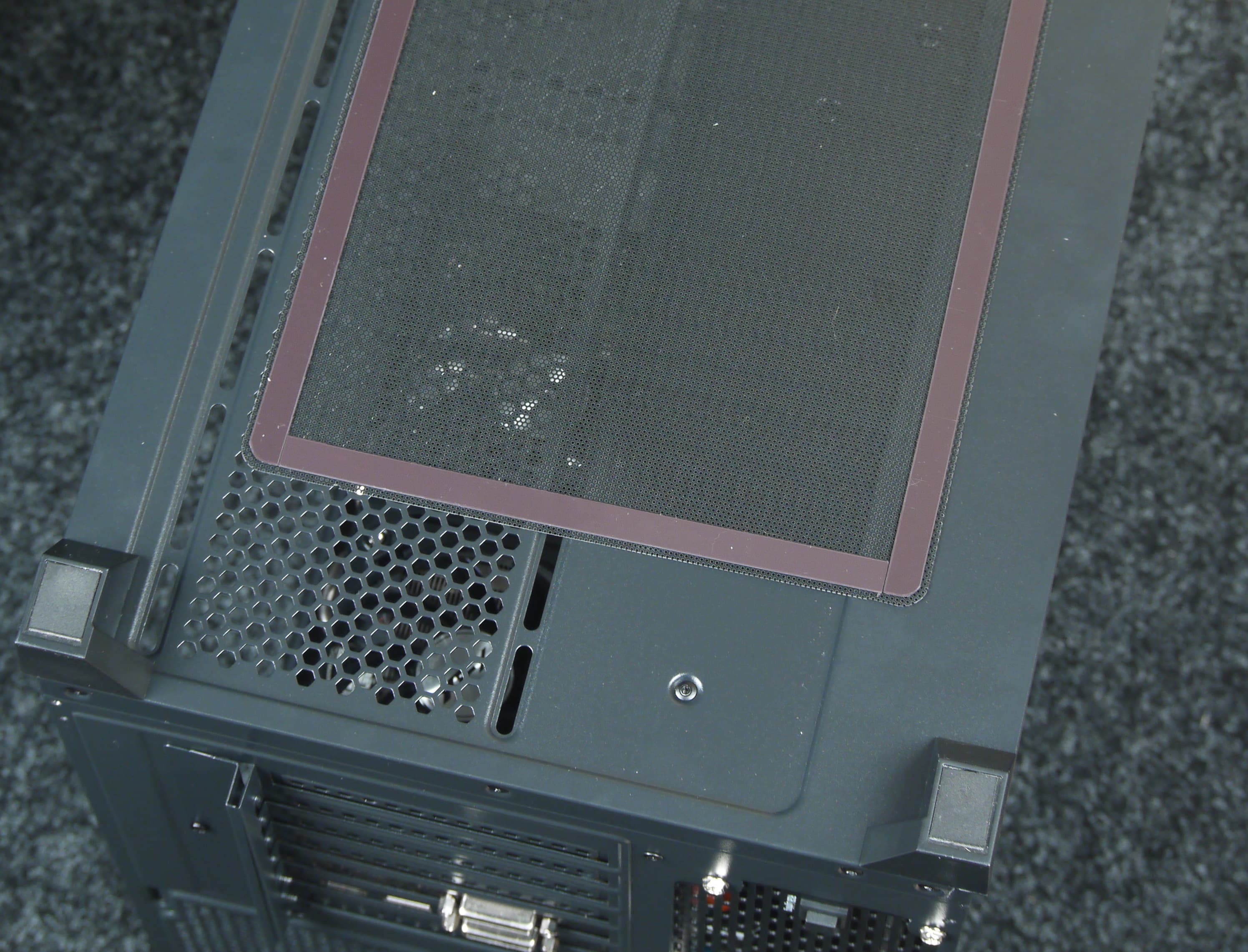 Наличие единственного фильтра подсказывает, что приоритетным местом для установки вентиляторов или радиатора является именно днище корпуса. Однако блок питания остается без защиты от пыли.