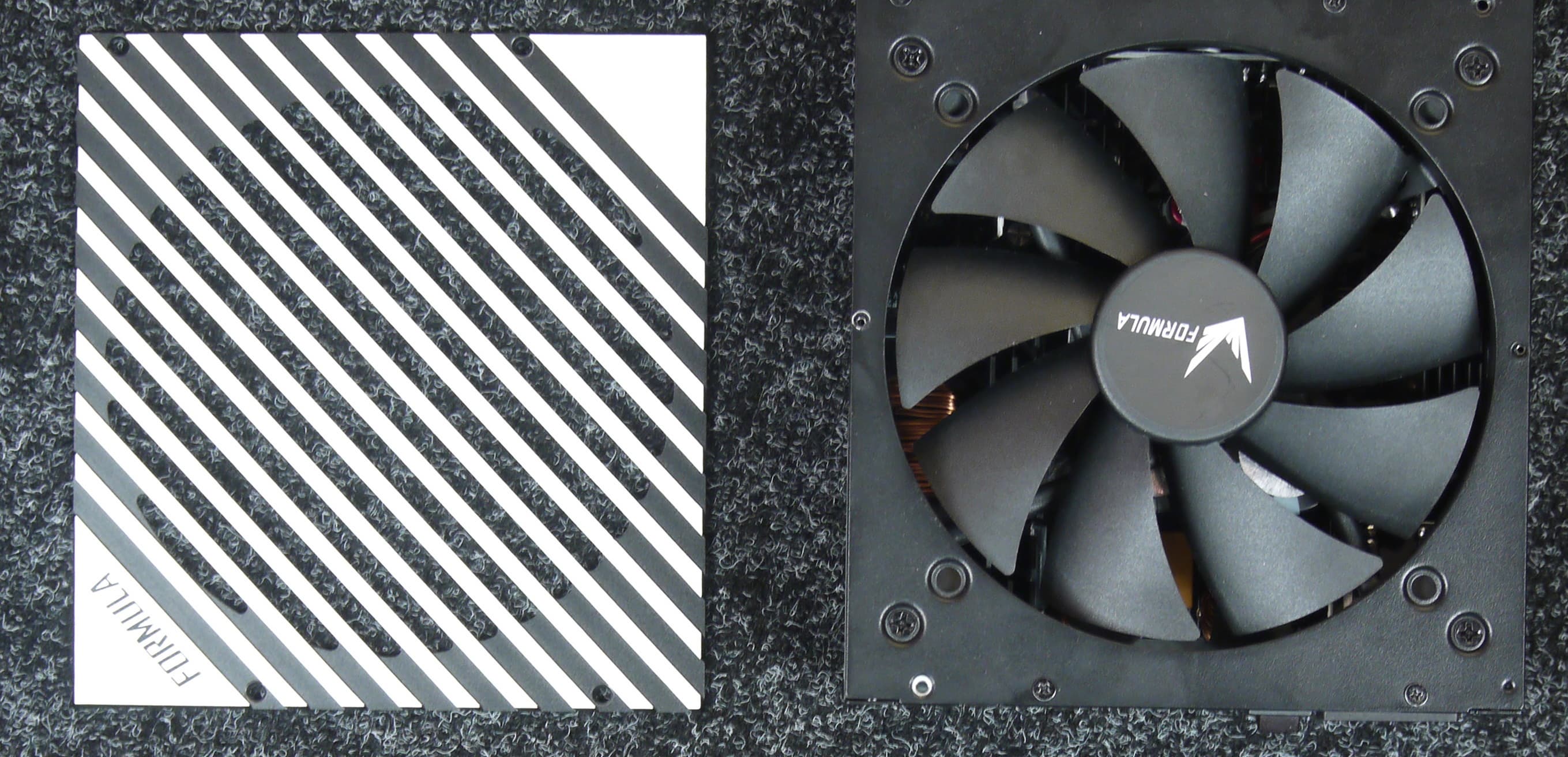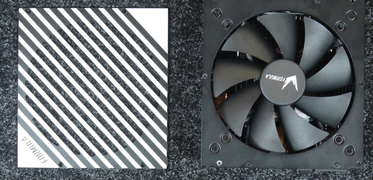 Интересная особенность Formula VL-1000G5-MOD — исполнение вентиляционной решетки: она не проволочная, но при этом съемная. Как такое может быть? Дело в том, что решетка выполнена в виде пластины с отверстиями и собственным креплением на винтах, что привело к необходимости выкручивать в общей сложности 8 винтов вместо четырех в обычном варианте исполнения. Отметим, что решетка имеет достаточно высокое аэродинамическое сопротивление, так как около половины площади отверстия перекрывается ребрами.