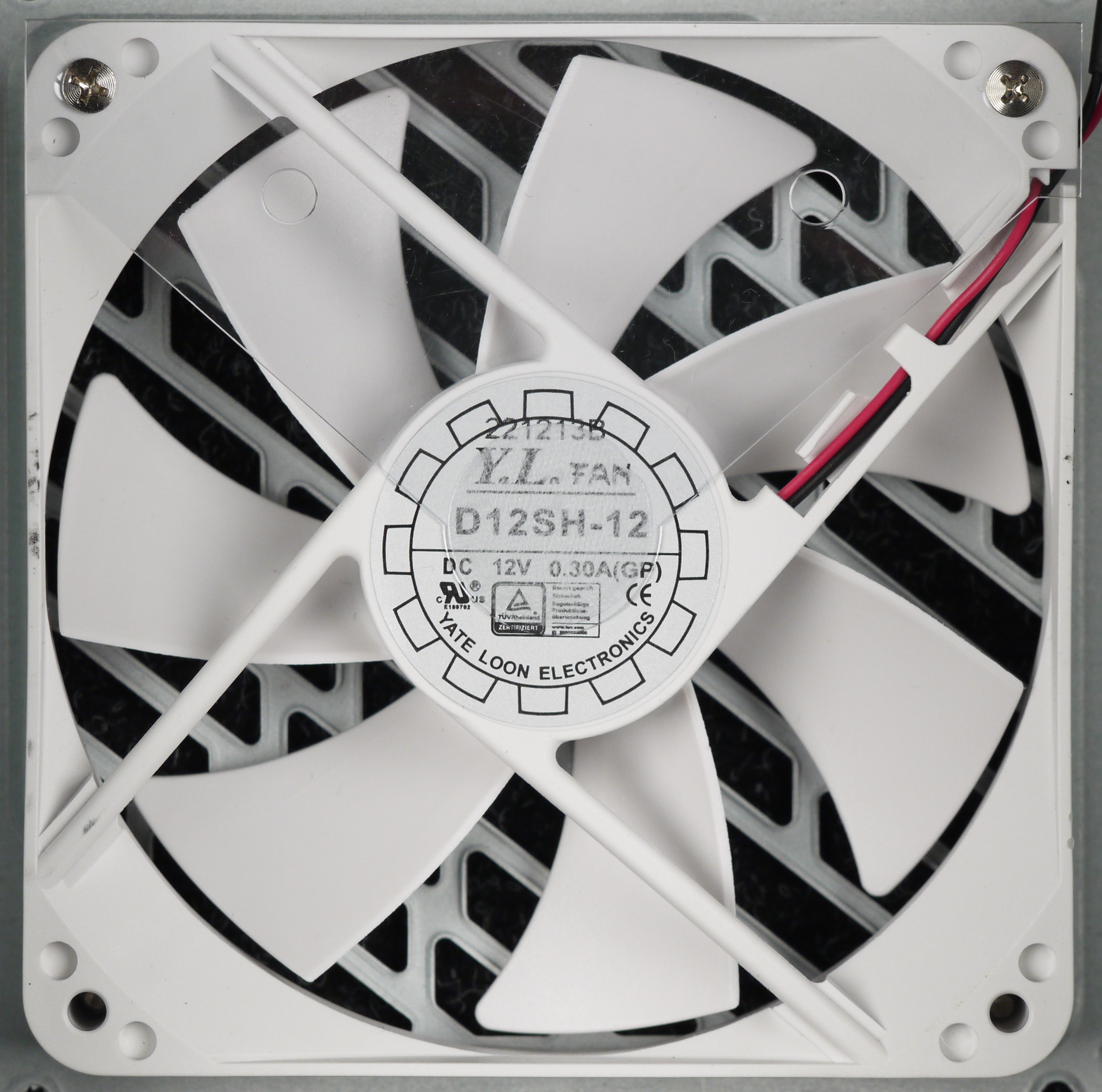 В блоке питания установлен вентилятор D12SH-12, основанный на самом простом подшипнике скольжения, он изготовлен компанией Yate Loon Electronics. Подключение вентилятора — разъемное, двухпроводное. Из достоинств подобного решения — возможность простой замены вентилятора на аналоги, а из недостатков — не очень долгий срок службы (около 3 лет при постоянной эксплуатации).