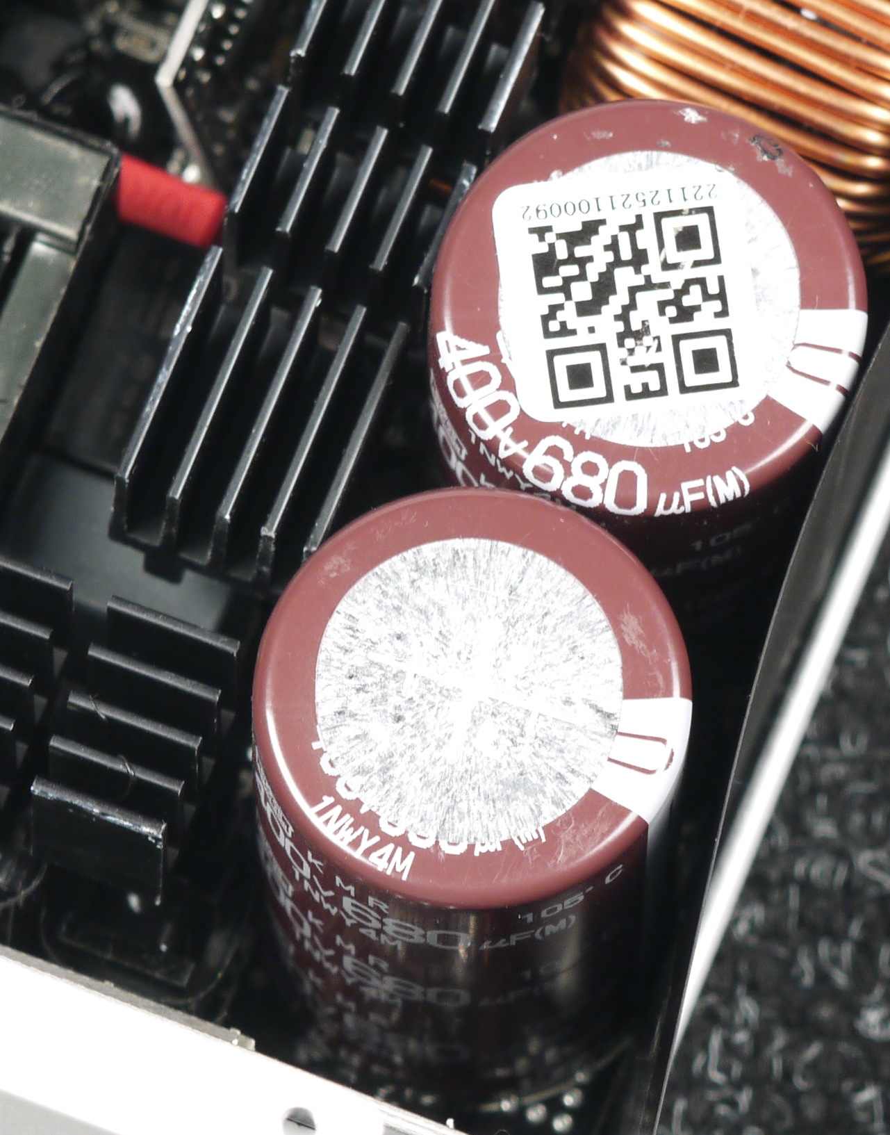 Полупроводниковые элементы высоковольтных цепей размещены на двух радиаторах, входной выпрямитель расположен на отдельном теплоотводе. Элементы синхронного выпрямителя установлены с оборотной стороны основной печатной платы, с лицевой стороны платы над ними имеется теплоотвод.