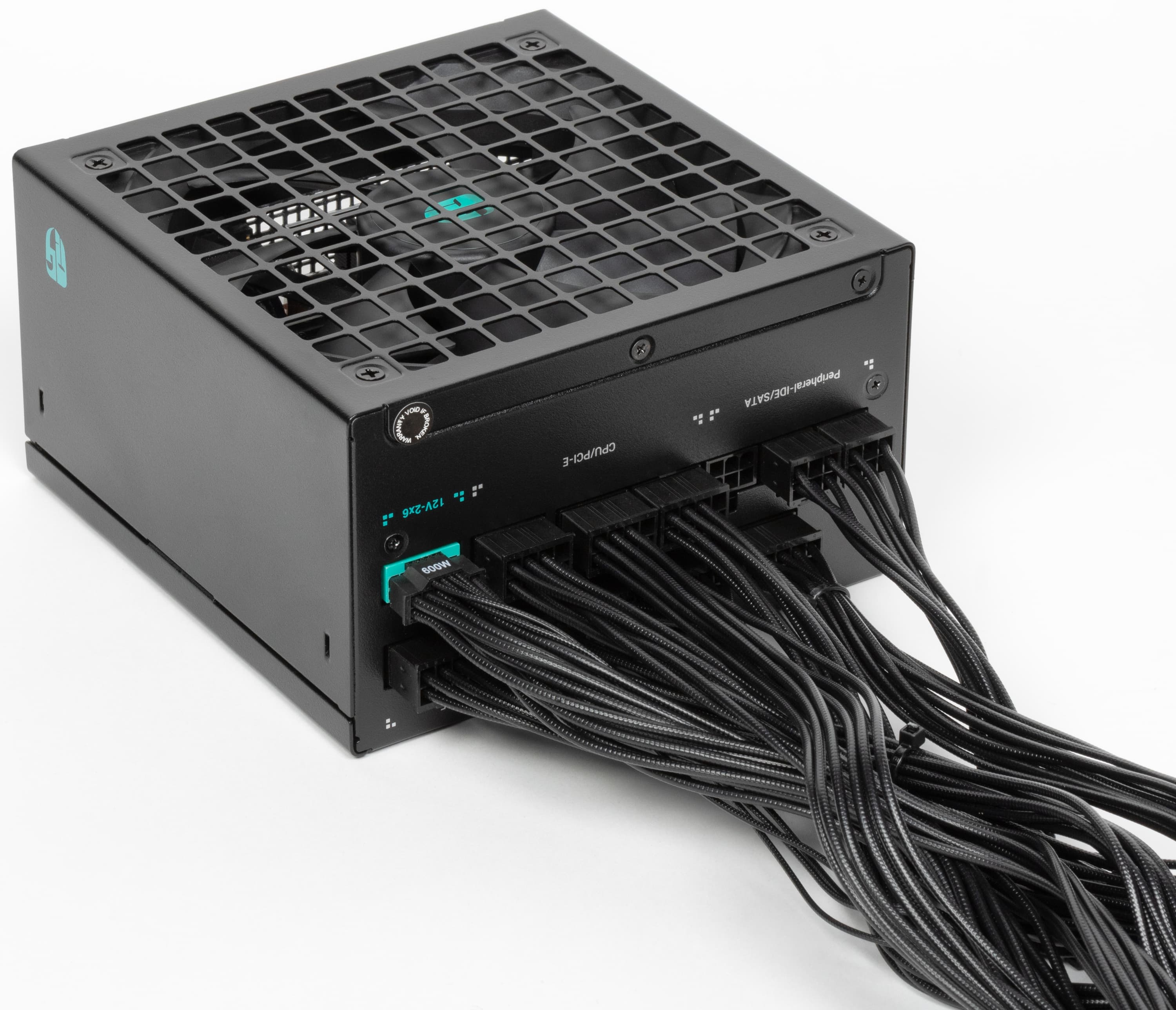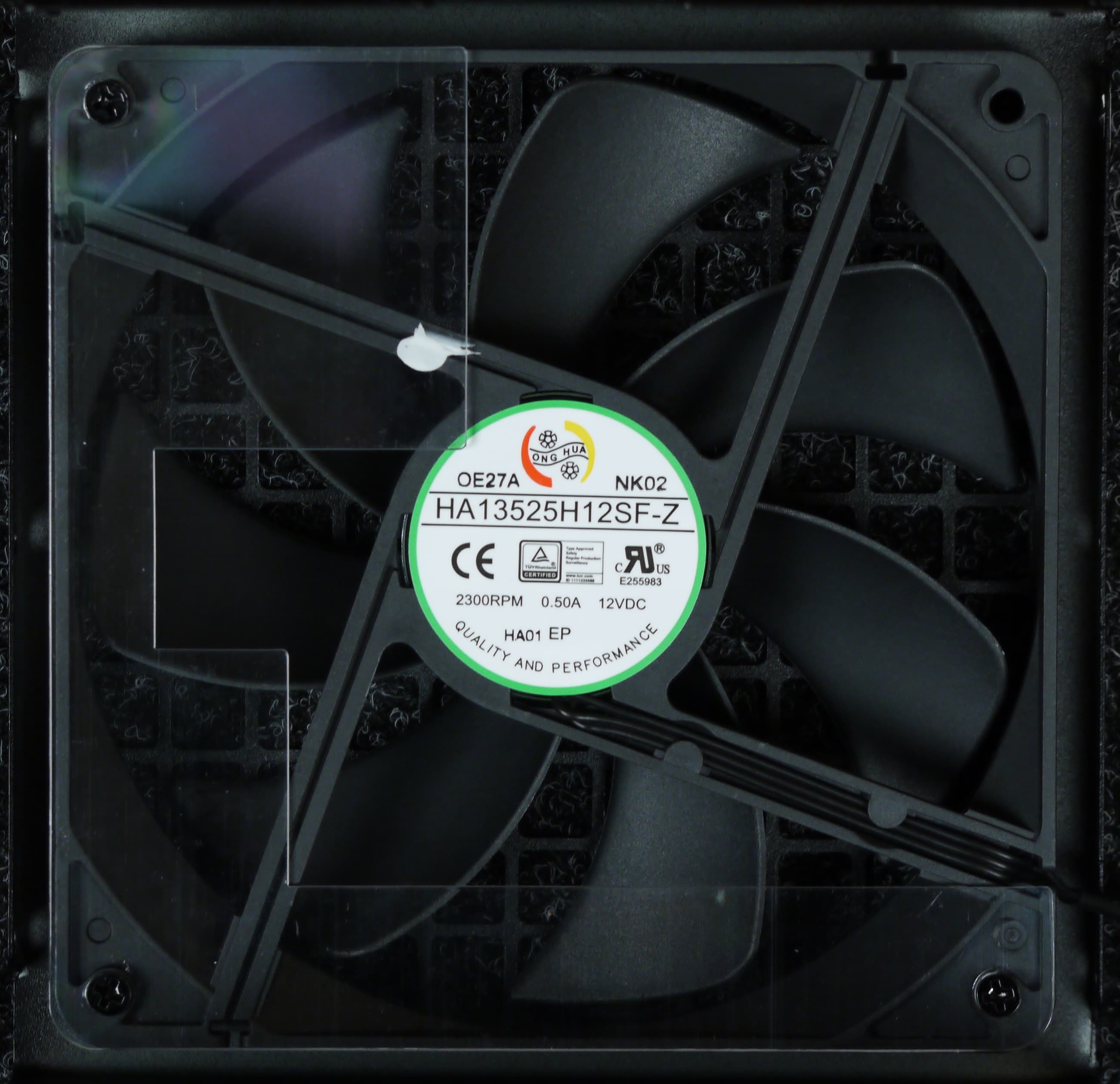 В блоке питания установлен вентилятор HA13525H12SF-Z (2300 об/мин), основанный на гидродинамическом подшипнике и изготовленный компанией Dongguan Honghua Electronic Technology. Подключение вентилятора — разъемное, трехпроводное.