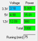 | Нагрузка через разъемы | 12VDC, Вт | 5VDC, Вт | 3.3VDC, Вт | Общая мощность, Вт |