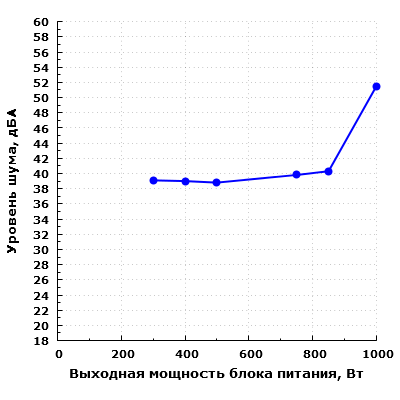 Но при включении вентилятора он сразу же шумит громко. При работе в диапазоне мощности от 300 до 500 Вт шум блока питания приближается к значению 40 дБА при условии настольного размещения, то есть при расположении блока питания в ближнем поле по отношению к пользователю. Подобный уровень шума можно охарактеризовать как достаточно высокий.