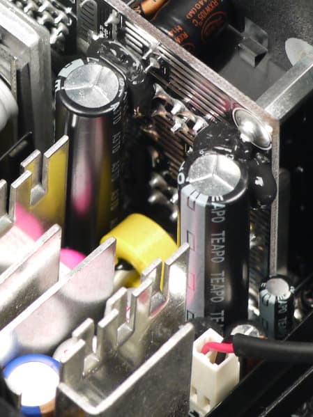 В низковольтных цепях установлены конденсаторы под торговыми марками Lelon и Teapo, а также некоторое количество полимерных конденсаторов.