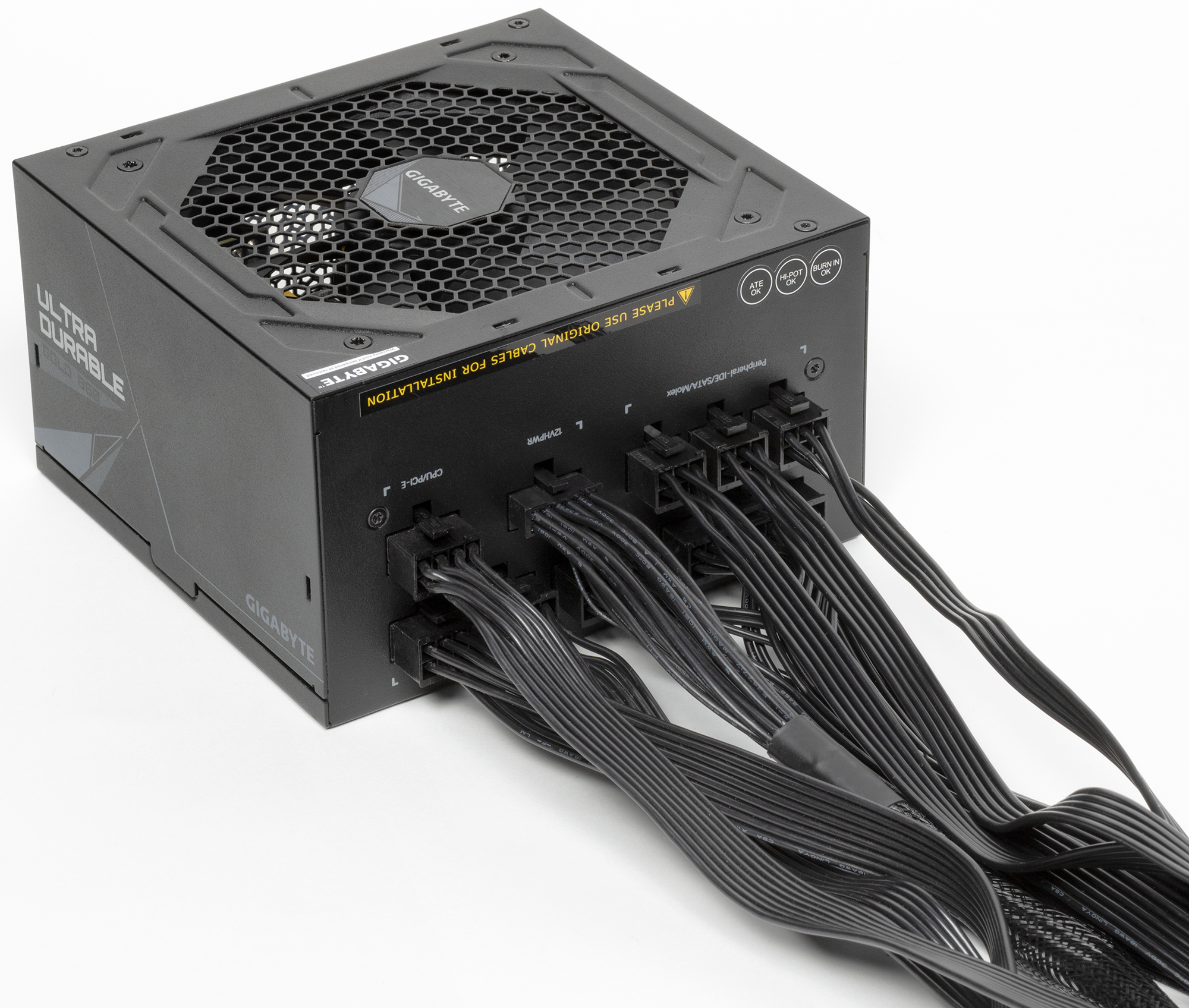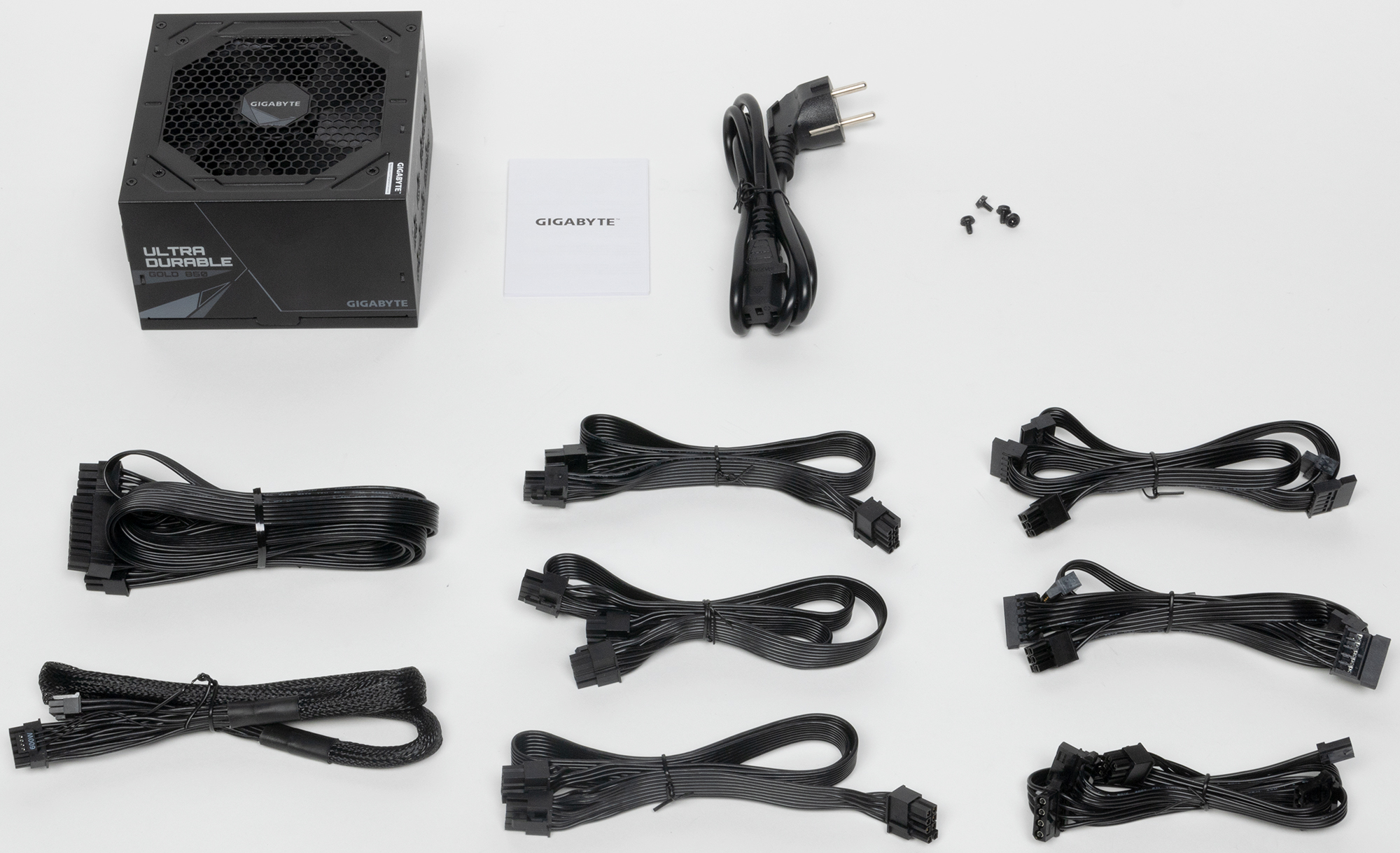 Блок питания Gigabyte UD1000GM PG5 имеет сертификат 80+ Gold. БП не предусматривает ручного выбора между всегда активным охлаждением и режимом с остановкой вентилятора при малой нагрузке, но по факту система охлаждения именно гибридная, то есть вентилятор может не вращаться, если система управления сочтет это уместным. Длина корпуса блока питания составляет стандартные 140 мм, дополнительно понадобится 15-20 мм для подвода проводов, поэтому при монтаже стоит рассчитывать на установочный размер порядка 160 мм. Для подавляющего большинства корпусов данная модель вполне подойдет.