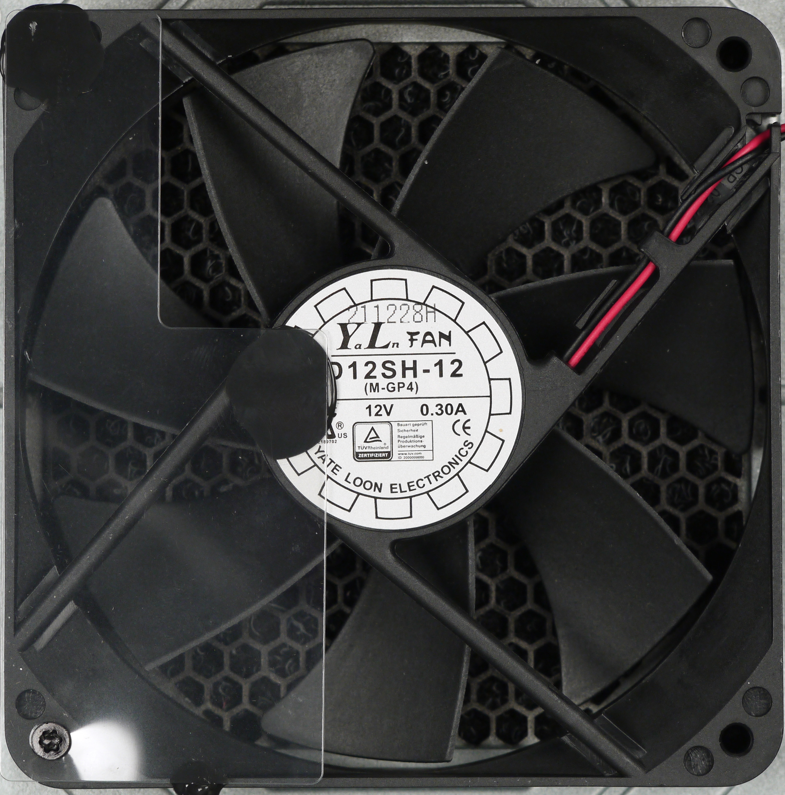В блоке питания установлен вентилятор D12SH-12 типоразмера 120 мм, имеющий, по данным производителя, максимальную скорость вращения 2200 оборотов в минуту. Вентилятор основан на гидравлическом подшипнике и произведен компанией Yate Loon. Подключение вентилятора — разъемное двухпроводное.