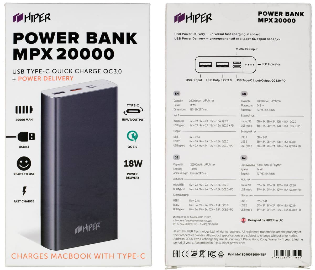 Серия Hiper Power Bank MPX: особенности, внешний вид, комплектация