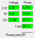 При типичном распределении мощности по каналам отклонения от номинала не превышают 3% по каналу +3.3VDC, 3% по каналу +5VDC и 2% по каналу +12VDC.