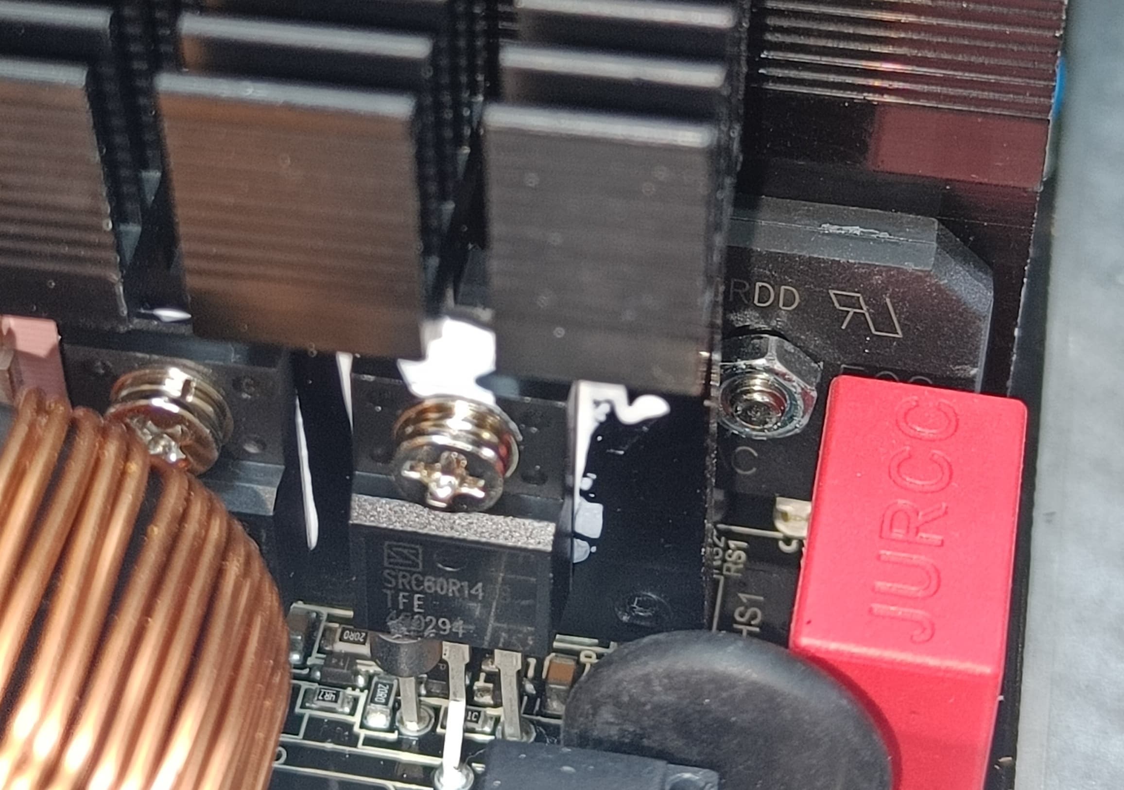 Полупроводниковые элементы высоковольтных цепей размещены на двух радиаторах, у входного выпрямителя радиатор отдельный.