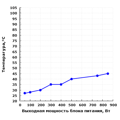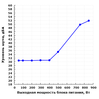 При работе на мощности до 400 Вт включительно шум блока питания находится на пониженном уровне для жилого помещения в дневное время суток — около 30 дБА с расстояния 0,35 метра.