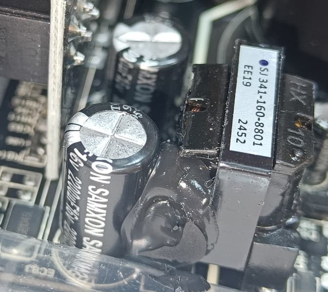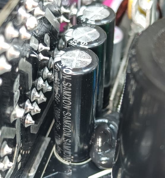В блоке питания установлены конденсаторы Samxon (Гонконг) в низковольтной части.