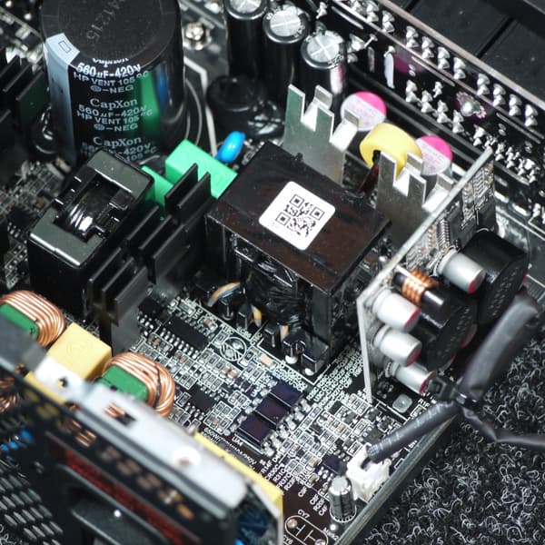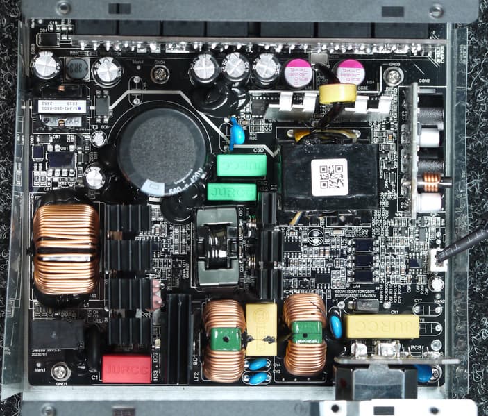 Блок питания оснащен активным корректором коэффициента мощности и имеет довольно широкий диапазон питающих напряжений от 100 до 240 вольт. Это обеспечивает устойчивость к понижению напряжения в электросети ниже нормативных значений.