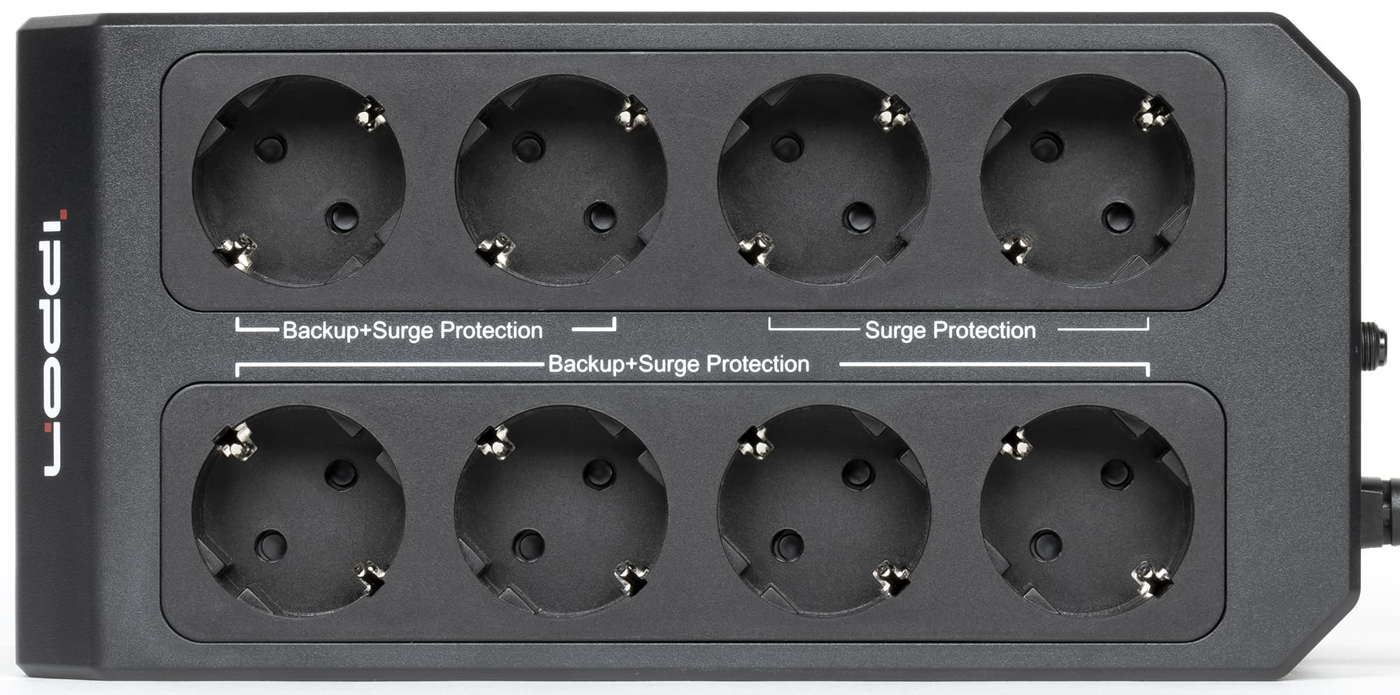 | Выходные разъемы | 6 × CEE7/4 (Schuko) с батарейной поддержкой 2 × CEE7/4 (Schuko) с защитой |