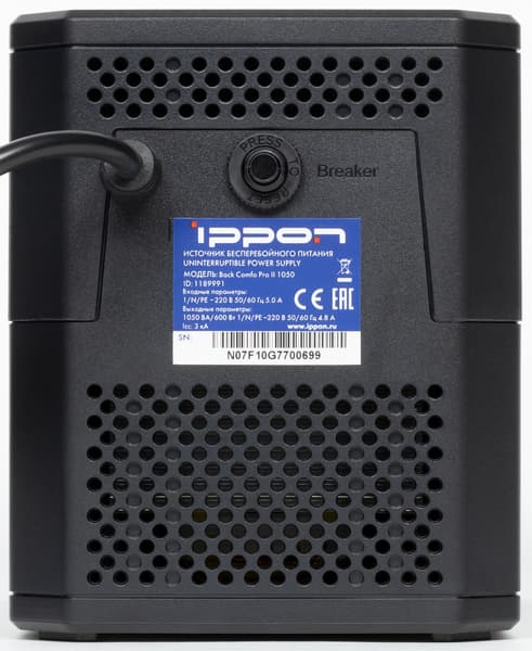 Источник бесперебойного питания Ippon Back Comfo Pro II 1050 по всем проверенным нами параметрам можно считать соответствующим заявленным значениям.