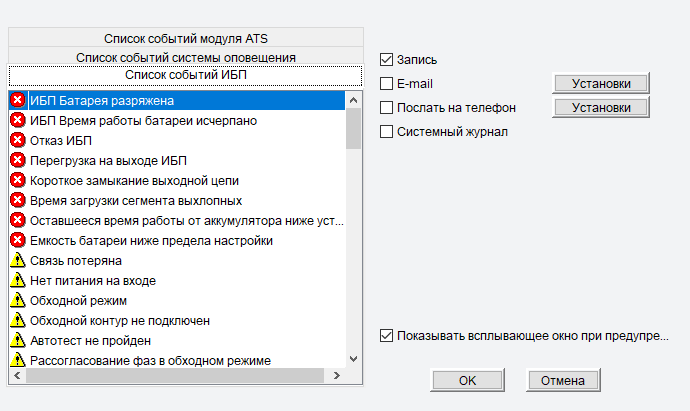 Дальше по порядку: можно переименовать источник («Установка модели ИБП»), но вряд ли это следует называть параметром управления. «Действия над событиями» подразумевают разного рода оповещения и необходимые для них установки: