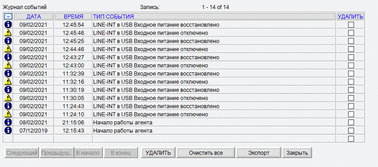 В параметрах управления ИБП единственная строчка — отключение звуковых сигналов при работе от батарей. Они действительно отключаются, но лишь до тех пор, пока работает программа: если выключить компьютер, на котором она запущена, то сигналы возобновятся.
