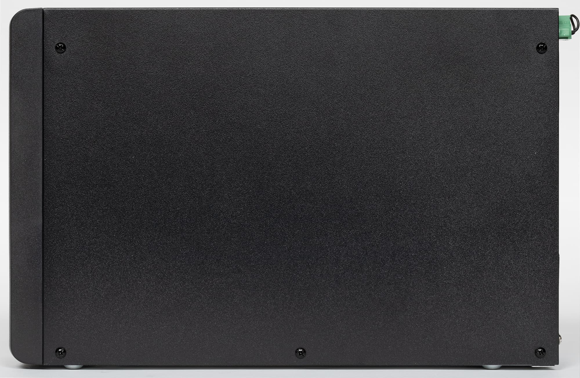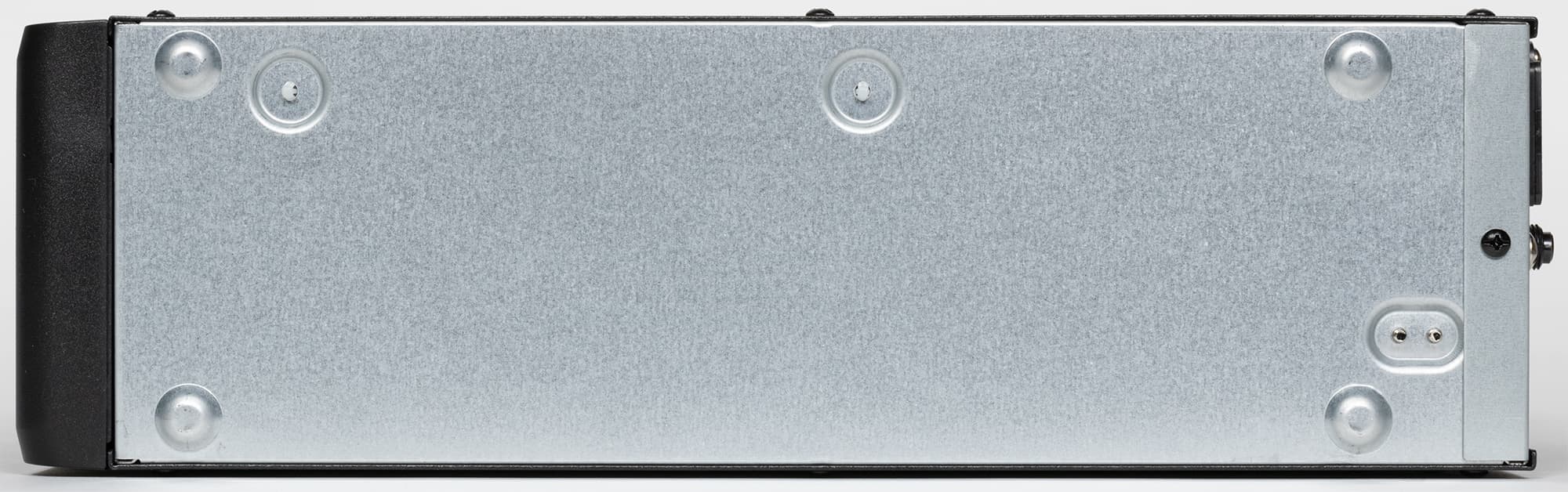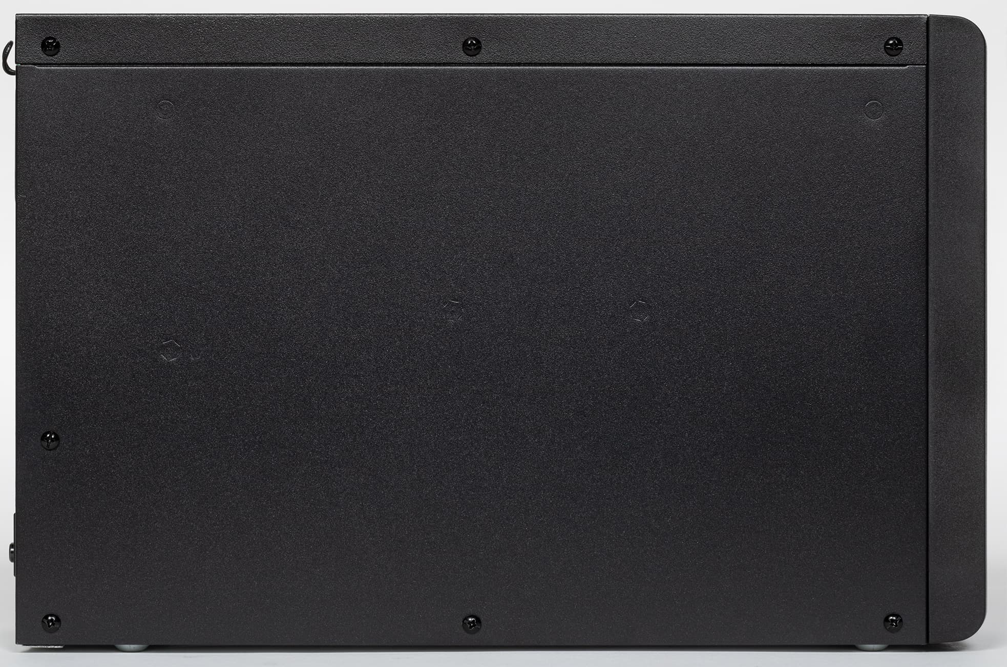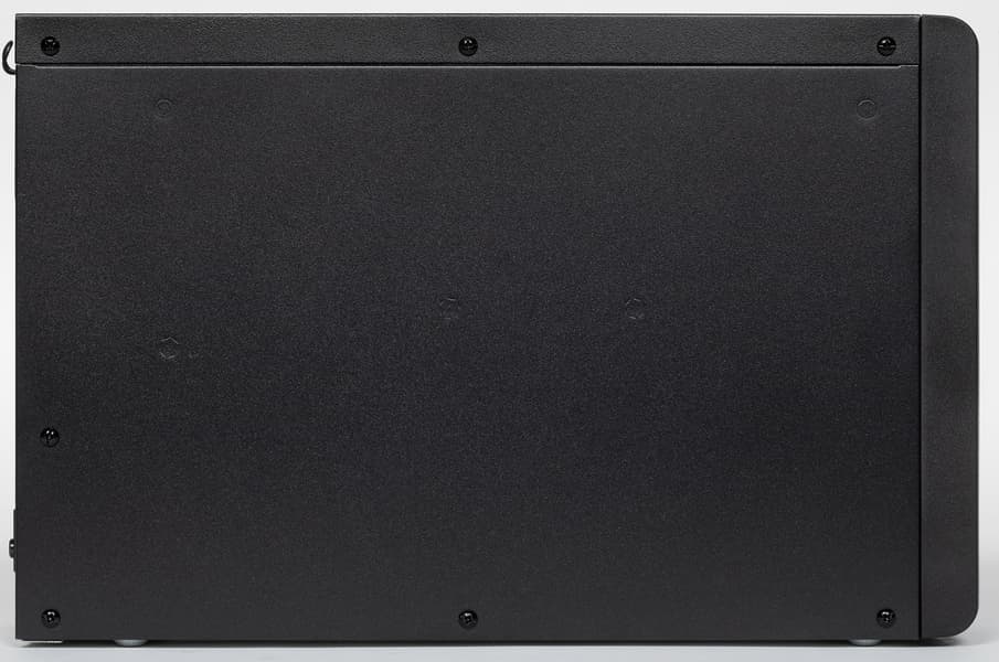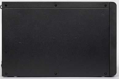 Благодаря отсутствию встроенных АКБ и трансформатора системы AVR источник получился поразительно компактным и легким, хотя в конструкции в основном используется сталь — и шасси, и наружные крышки выполнены из металла, пластиковой сделана только фронтальная панель. Даже ножки металлические — штампованные выступы на днище, их неплохо было бы оснастить хоть какими-то наклейками.