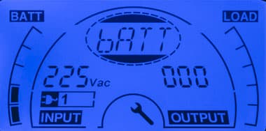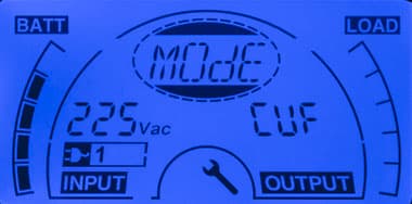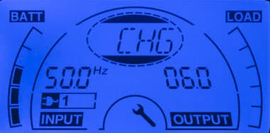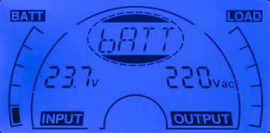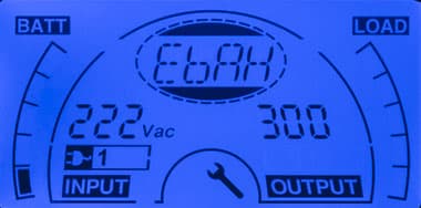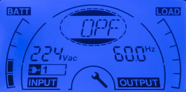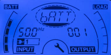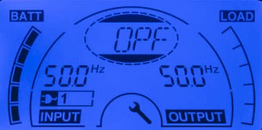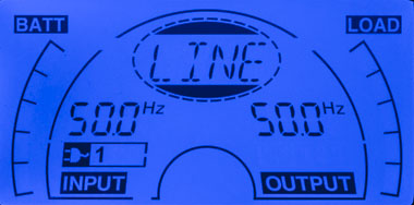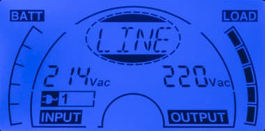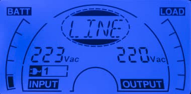 - при автономной работе вместо параметров питающей сети выводится величина постоянного напряжения на клеммах батареи;