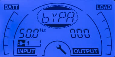 Вход в меню осуществляется нажатием и удержанием до короткого звукового сигнала кнопки Enter (в нижней части дисплея отобразится символ гаечного ключа), выбор нужного пункта — такой же манипуляцией с кнопкой Select, вход в изменение установок данного пункта — снова Enter, перебор доступных в нем значений — Select, подтверждение выбора — Enter. В целом такое управление двумя кнопками довольно логичное, однако надо помнить: вход в меню возможен только из режимов Standby (надпись стилизована как «STbY»; то есть когда нагрузки отключены) или Bypass (надпись стилизована как «bYPA»; байпас, обходной режим), а если замешкаться, то через 10 секунд произойдет автоматический выход из режима настроек. В батарейном или линейном режимах войти в меню тоже можно, но набор настроек будет ограниченным.