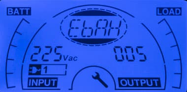 Режим аварийного отключения питания EPO задействуется с помощью расположенной на задней стенке группы контактов, которые при поставке замкнуты перемычкой. При размыкании выходы ИБП сразу отключаются, подается извещение в виде непрерывного звукового сигнала и красной подсветки дисплея, на котором отображаются буквы EPO.