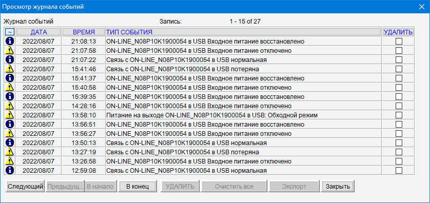 Ведется журнал событий, который можно просматривать и чистить от лишнего, для содержимого предусмотрен экспорт в файл формата CSV.