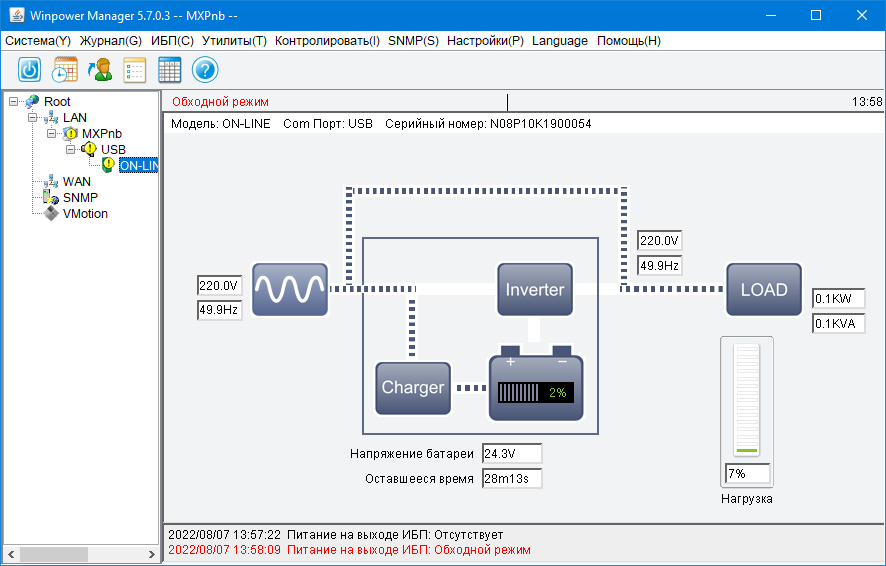 Теперь о том, насколько точно отображаются параметры. Естественно, значения напряжений и частоты определяются не программой, а поступают из ИБП.