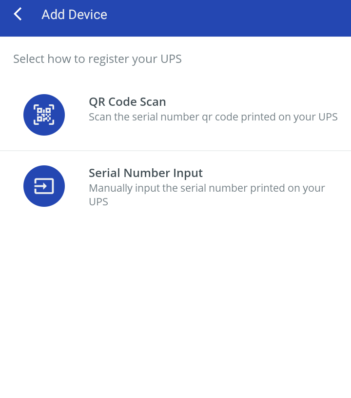 Добавлять устройство можно по серийному номеру или по QR-коду, наклейки с которыми имеются в задней части корпуса. Если источник уже установлен в стойку и доступ к этим наклейкам не слишком удобен, серийный номер можно посмотреть в меню, пункт «Идентификация». На последнем этапе указывается способ подключения ИБП к интернету: через проводную (штатный адаптер Ethernet) или беспроводную (опциональный Wi-Fi) сеть.