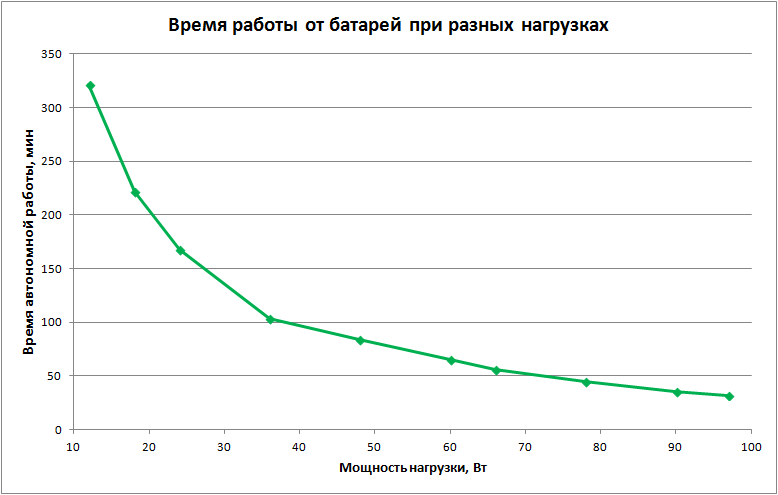 Перейдем к тестированию автономной работы с разными нагрузками. Вот результаты в виде графика:
