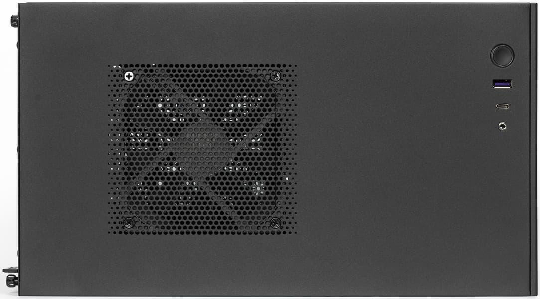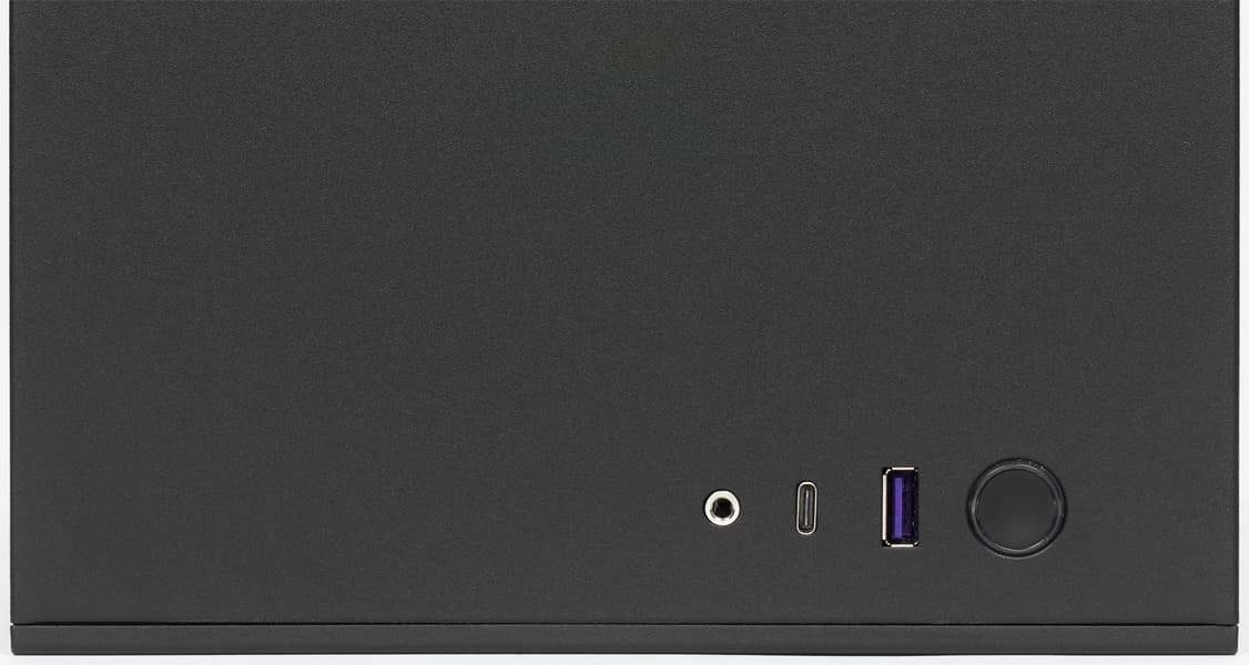 Кнопка включения и порты ввода/вывода находятся на верхней стенке в передней части корпуса. В их состав входят один USB 3.1 Gen 1 (USB 3.0), один USB 3.1 Gen 2 (USB 3.1) Type-C и разъем для подключения гарнитуры. Таким образом, корпус позволяет подключать проводные гарнитуры как с цифровым, так и с аналоговым интерфейсом со стороны передней панели. Но разъемов USB все-таки маловато.