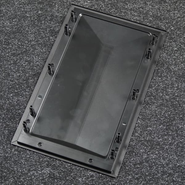 Кожух блока питания закрывает место установки БП со стороны прозрачной левой стенки, придавая внутреннему виду корпуса аккуратность и законченность. Именно это и является основной функцией кожуха — прятать блок питания с проводами. Кожух тут не полноразмерный, на нем много вентиляционных отверстий, также он исполняет роль своеобразного элемента жесткости, который обеспечивает дополнительную фиксацию основания для системной платы с нижней стороны.
