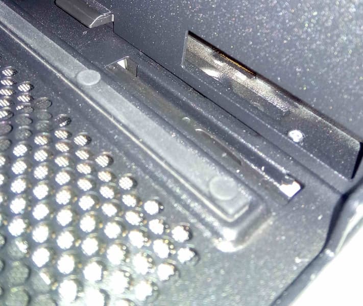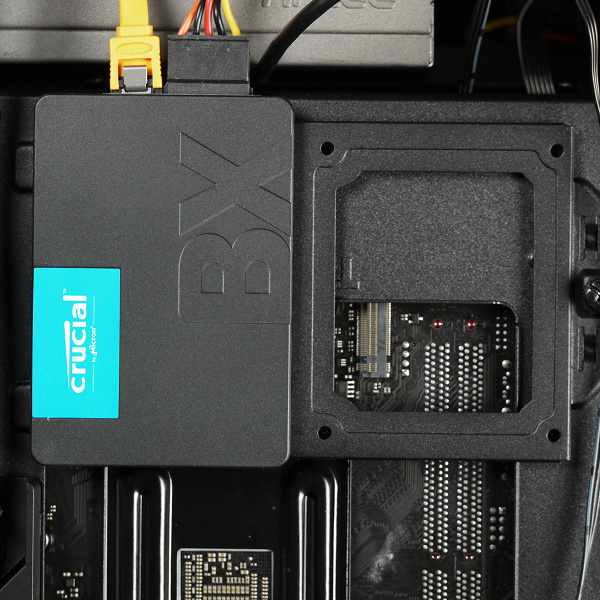 Еще одно место для накопителя формата 2,5 дюйма имеется на кожухе блока питания, где установлена быстросъемная пластиковая рамка.