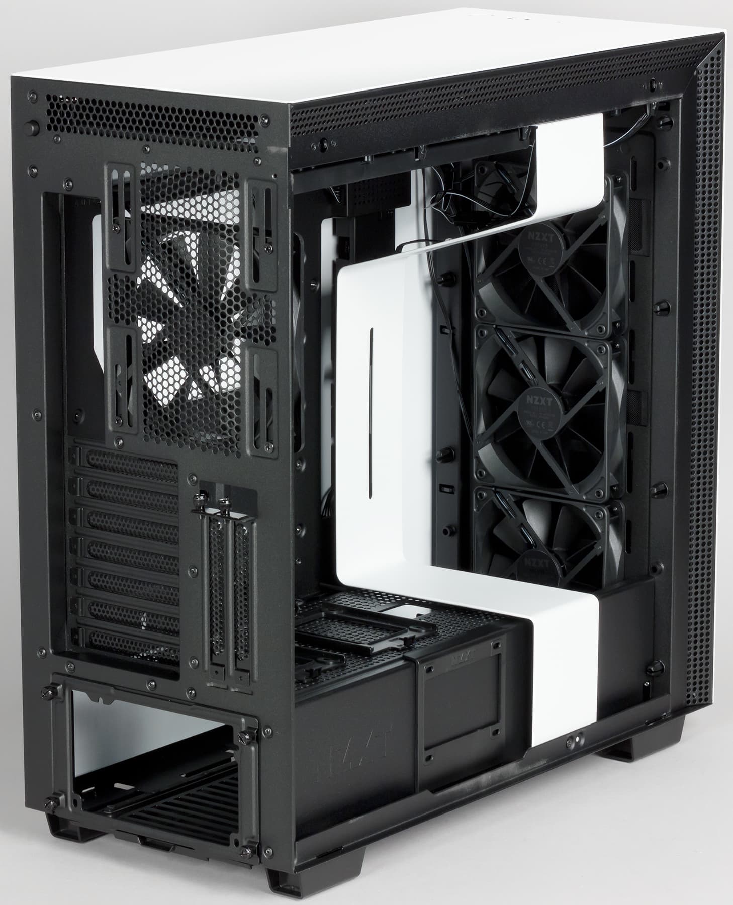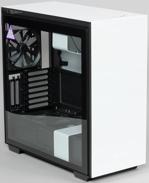Скажем несколько слов о модификациях данной модели. Их всего две: H710i, оснащенная программно-аппаратным комплексом управления вентиляторами и подсветкой, и H710, которая лишена данного комплекса. Обе модификации поставляются в трех расцветках: черной, белой и черно-красной. Белая расцветка называется matte white, но у нее имеются и черные детали, что выглядит весьма выигрышно за счет контраста. Именно корпус такой расцветки мы получили на тест.