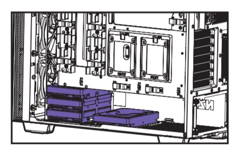 Полноразмерные жесткие диски устанавливаются в предназначенную для них трехместную корзину.