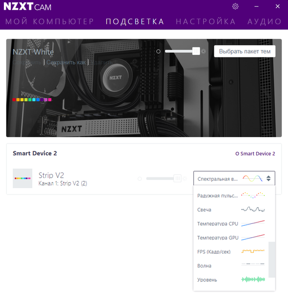 Многофункциональный контроллер Smart Device 2, к которому подключаются элементы подсветки и вентиляторы, управляется при помощи стандартного для NZXT программного продукта NZXT Cam. Он объединяет в едином интерфейсе все устройства из экосистемы NZXT Cam, которые подключены к портам USB компьютера.