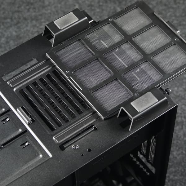 Сверху компоненты системы охлаждения устанавливаются на съемный кронштейн, который фиксируется винтами с накатной головкой, которые расположены изнутри корпуса под верхней стенкой. Кронштейн снимается снаружи после демонтажа верхней стенки.