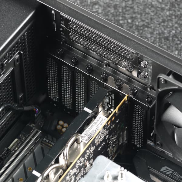 Система фиксации карт расширения самая обычная — крепление на винтах изнутри корпуса с индивидуальной фиксацией. Все заглушки для плат расширения съемные, фиксируются одним винтом с накатной головкой.