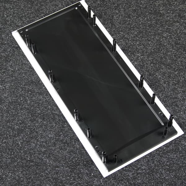 Передняя панель составная: поверх пластикового основания размещена декоративная панель из стали.