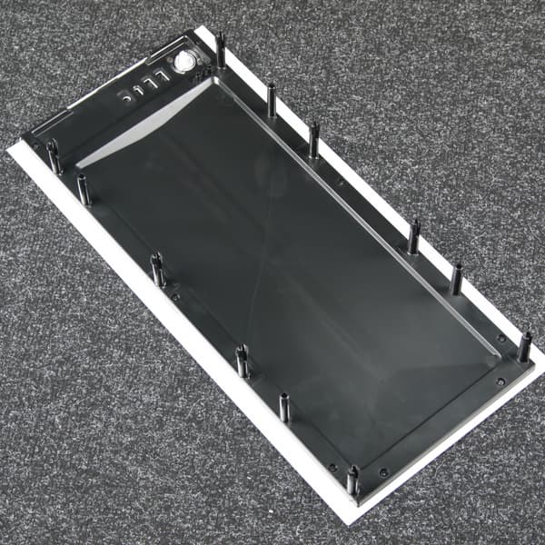 Левая стенка стеклянная с монтажной рамкой с внутренней стороны и с фиксацией одним винтом.