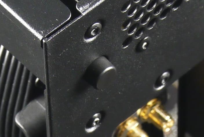 Кнопки перезагрузки у корпуса не предусмотрено, а кнопка включения имеет круглую форму, малый ход и срабатывает с громким щелчком. Индикатор Power LED опоясывающего типа находится под круглым световодом около кнопки включения, а индикатор активности жесткого диска встроен под этот же световод в виде небольшой точки слева. Светятся оба индикатора рассеянным белым светом.