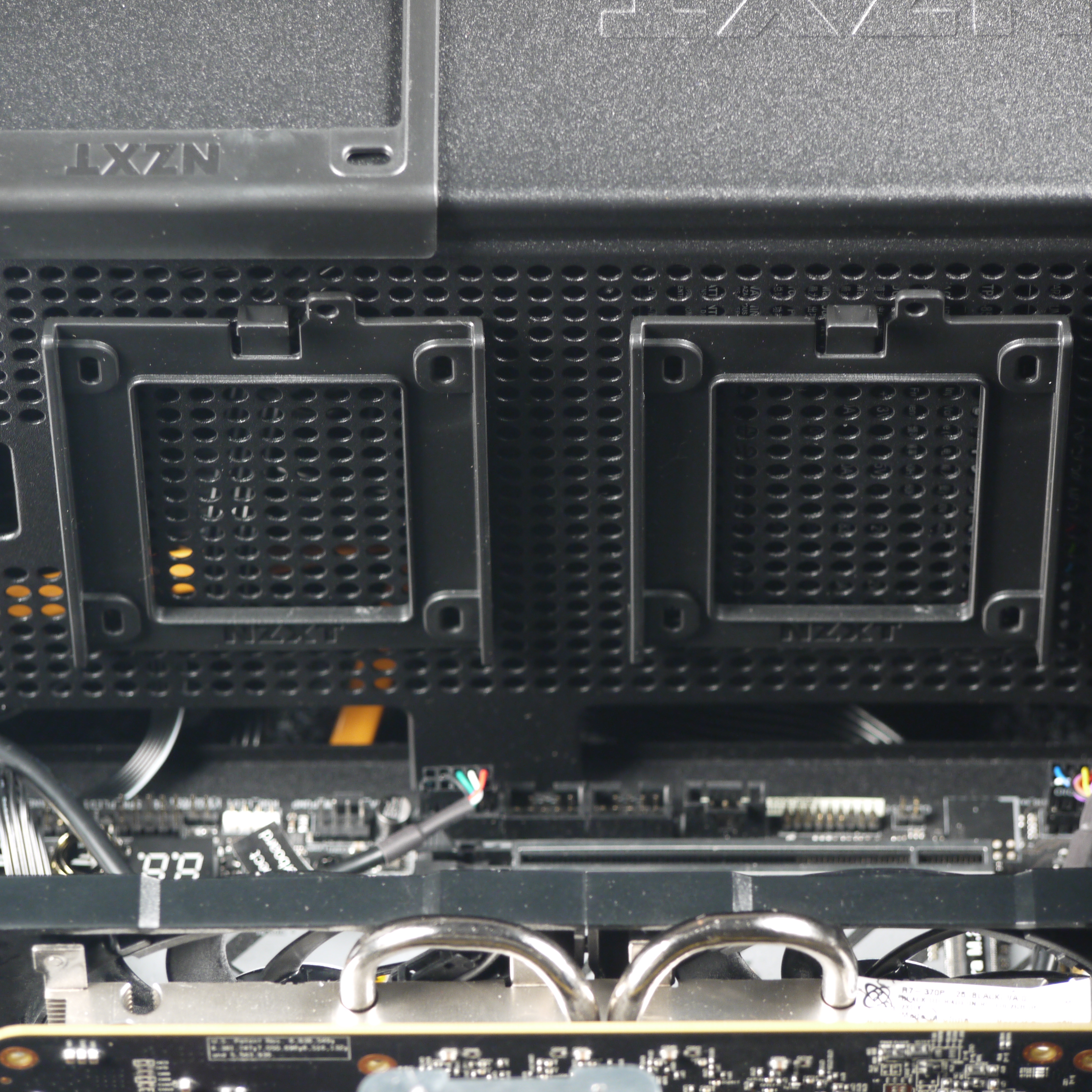 В корпусе можно установить до трех радиаторов, два из которых может быть типоразмера 280 или 360 мм, а один — 140 мм. Наиболее удачным является размещение радиатора сверху, где предусмотрено место между кронштейном и верхней стенкой корпуса, также есть место под кронштейном со стороны системной платы.