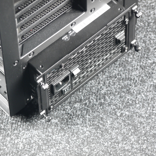 Еще одно место для накопителя формата 2,5 дюйма имеется на кожухе блока питания сбоку, где установлена быстросъемная пластиковая рамка.