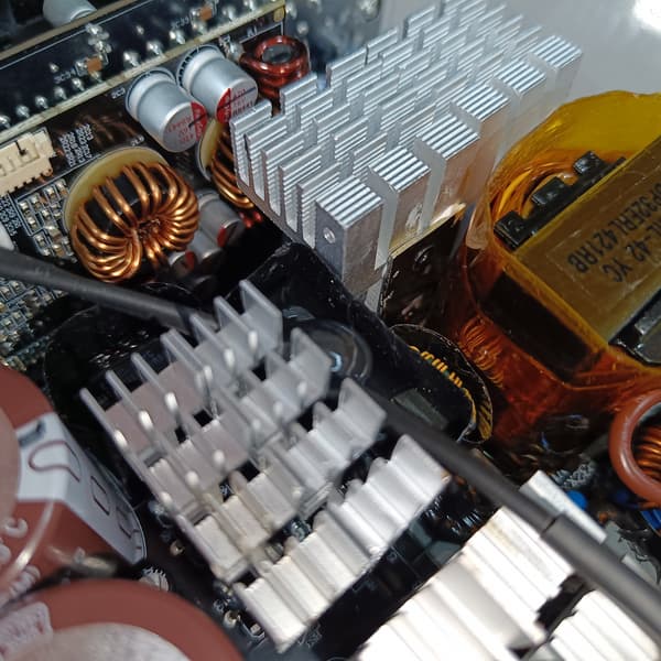 Полупроводниковые элементы высоковольтных цепей размещены на двух радиаторах, входной выпрямитель имеет собственный радиатор. Элементы синхронного выпрямителя установлены с лицевой стороны основной печатной платы, сверху на них установлены два радиатора, которые удерживаются за счет монтажных пластин.