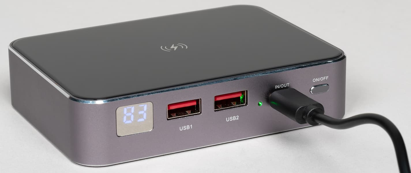 Если же вес играет решающую роль, то можно выбрать вторую модель линейки, которая почти на треть легче (заявленный вес нетто 290 граммов вместо 410), да к тому же на четверть тоньше (17 против 23 мм). Но тогда придется смириться не только с меньшей емкостью, но и с иным пределом по мощности — всего до 18 Вт (12 В / 1,5 А), то есть о питании ноутбуков придется забыть.