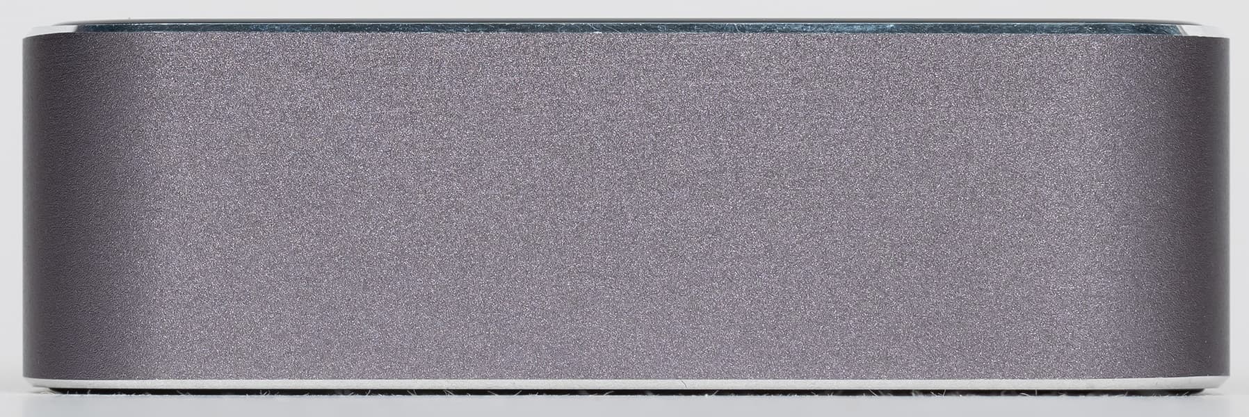 Для пауэрбанка упоминается единственная окраска — «серый космос». Но надо уточнить: корпус у него сделан из алюминиевого сплава, а верхняя и нижняя крышки из закаленного стекла. Поэтому серыми (и матовыми) являются только боковые поверхности, а стекло черное и, естественно, глянцевое; переход от алюминия к стеклу в соответствии с модой последних лет оформлен небольшими шлифованными фасками. Выглядит все это очень эффектно, вот только пальцами за стекло лучше не браться.
