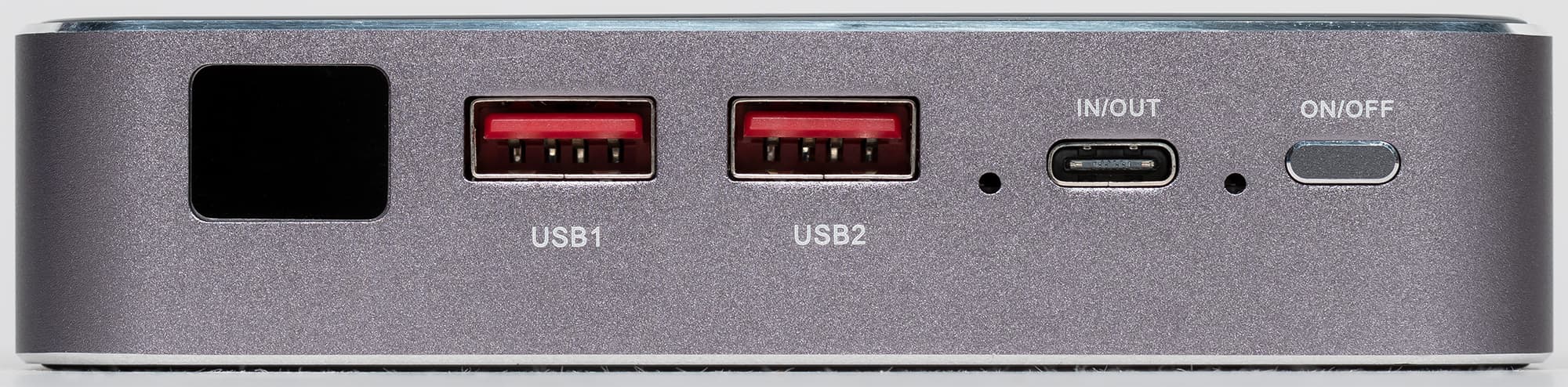 В некоторых разъемах USB-A, применяемых в различных источниках питания, контакты VCC и GND имеют увеличенную ширину, что позволяет снимать с них бо́льшие токи. Но в данном случае у обоих таких портов контакты обычные; как показали тесты, в одном из режимов на USB2 это сказалось негативно (см. ниже). Здесь не надо забывать: помимо разъема-female с широкими контактами, потребуется еще и кабель с аналогичным коннектором-male, что также бывает далеко не всегда.