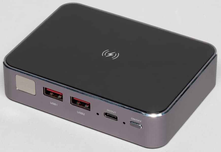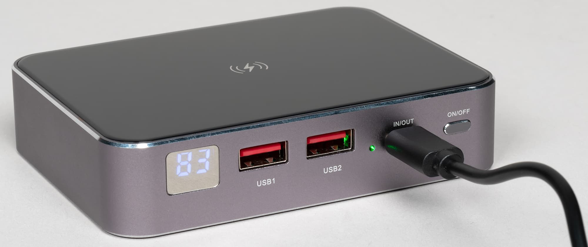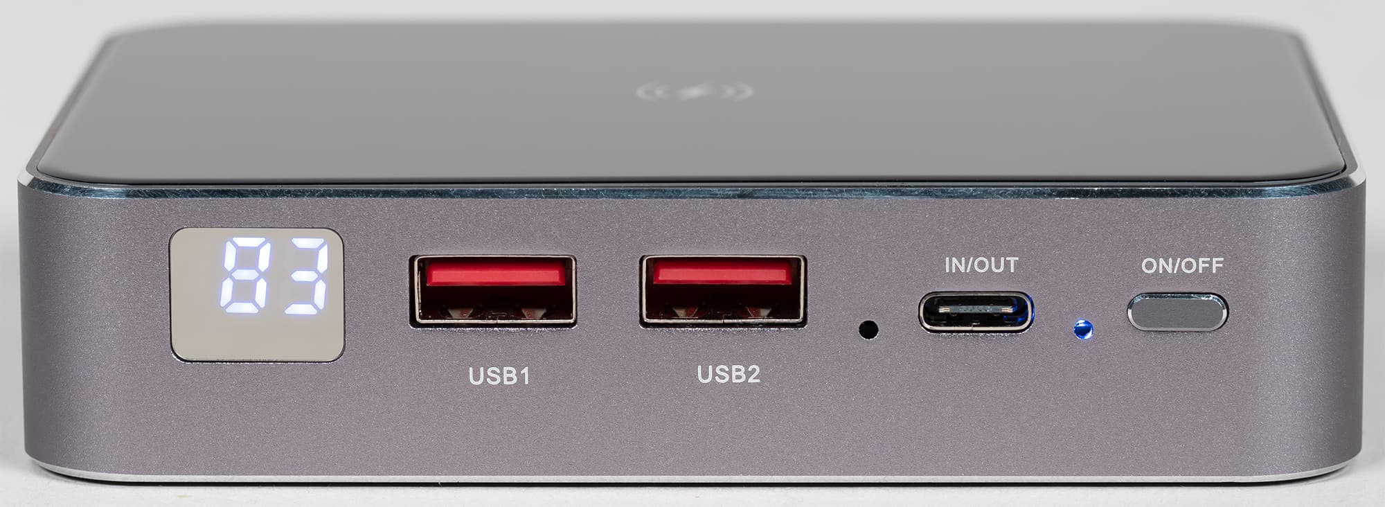 Более ощутимыми и бесспорными плюсами модели являются моменты, не связанные с графеном: богатая комплектация, включающая мощный, но компактный адаптер для заряда и чехол, а также расширенная функциональность — помимо выходов с поддержкой технологий быстрой зарядки Quick Charge и Power Delivery, есть встроенное беспроводное зарядное устройство, и это первый побывавший у нас подобный «комбайн».