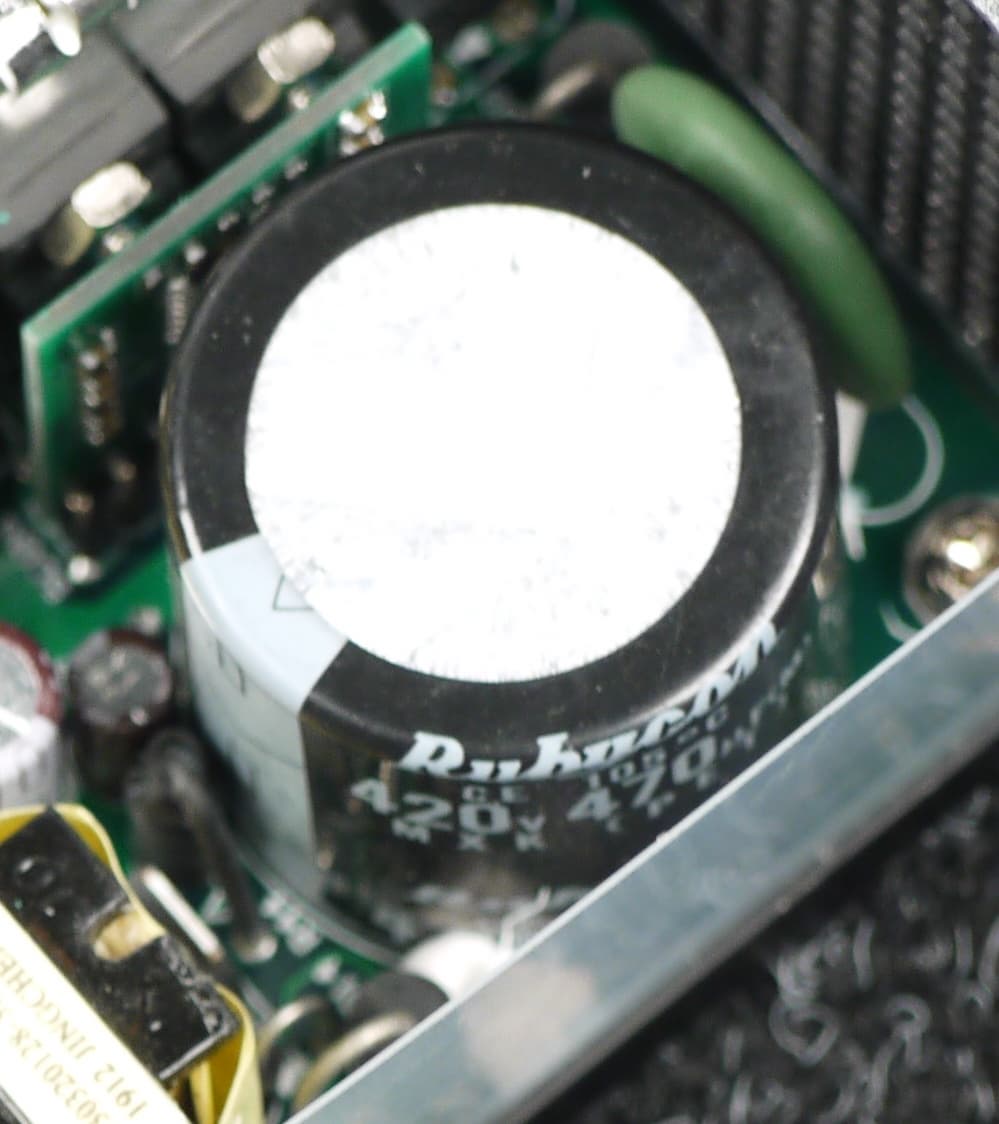 Конденсаторы в блоке питания имеют преимущественно японское происхождение. В основной массе это продукция под торговыми марками Rubycon и Nippon Chemi-Con. Установлено и большое количество полимерных конденсаторов.