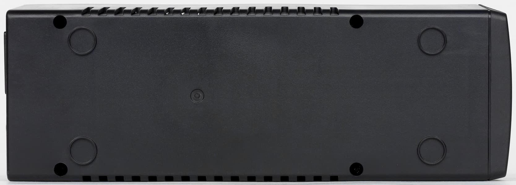 Вентиляторов в корпусе нет, поэтому в штатных режимах ИБП работает почти бесшумно, даже гудение трансформатора можно услышать, лишь прижавшись ухом к корпусу. При работе от батареи все же есть негромкий низкочастотный гул, но его слышно лишь когда источник установлен на расстоянии 40-50 см от головы, причем в очень тихом офисном помещении, где работает единственный компьютер, не самый мощный и шумный.