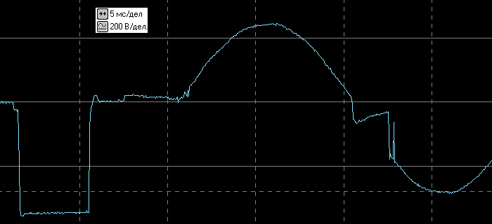 Вот осциллограммы, иллюстрирующие различные процессы с линейной нагрузкой 100 Вт. Сначала работа AVR: