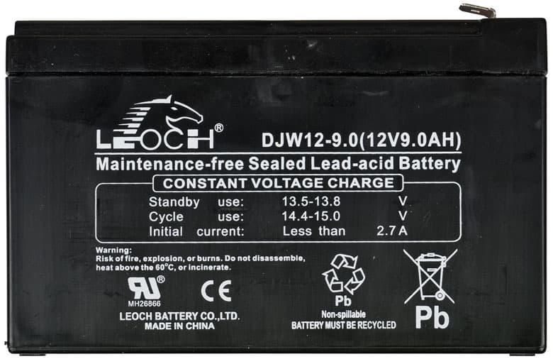 На аккумуляторах в бюджетной серии явно не экономили: в нашем экземпляре была установлена свинцово-кислотная аккумуляторная батарея Leoch DJW12-9.0 с заявленными напряжением 12 В и емкостью 9 А·ч.